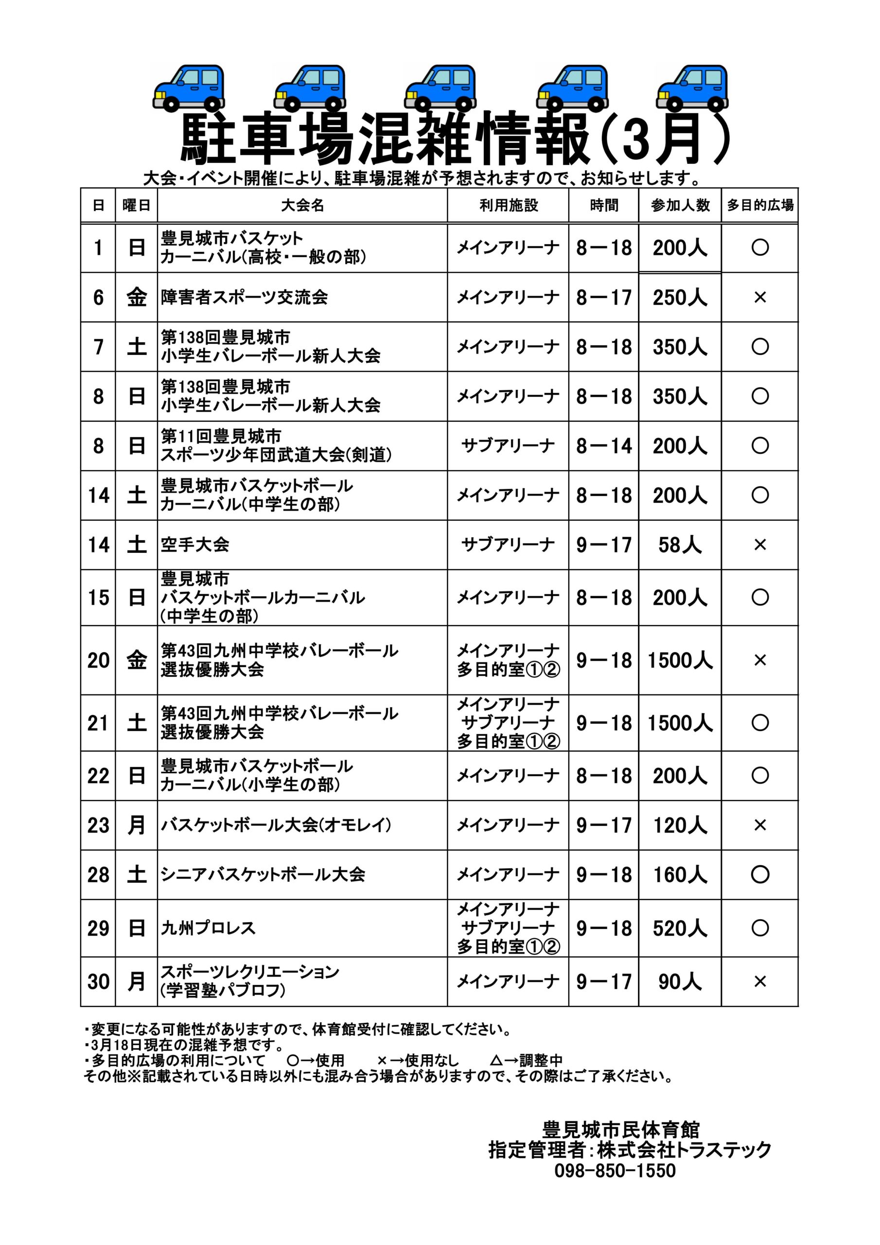 令和9年3月分の空き状況のご確認は体育館へお問い合わせください。