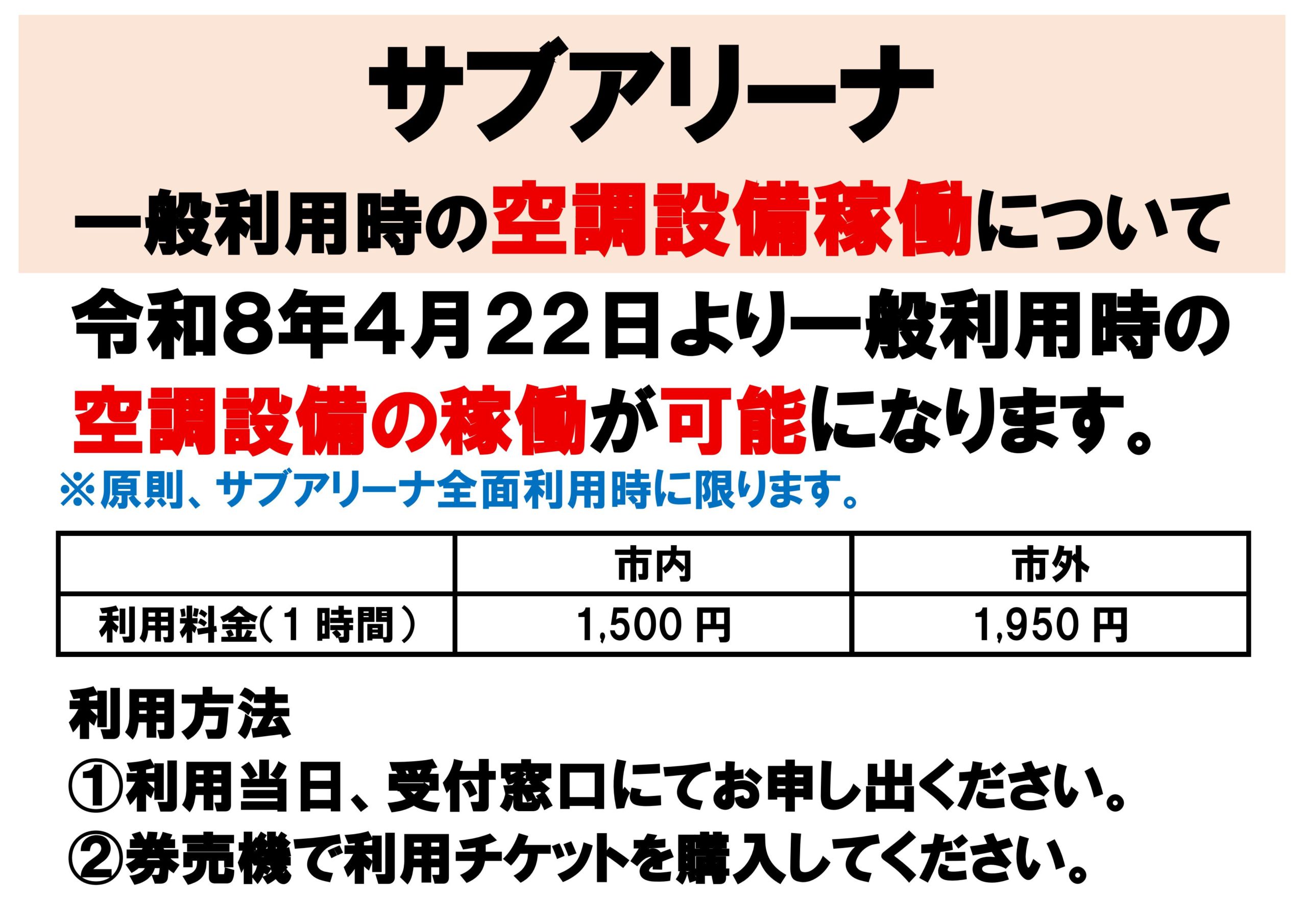(サブアリーナ)一般利用時の空調設備稼働について